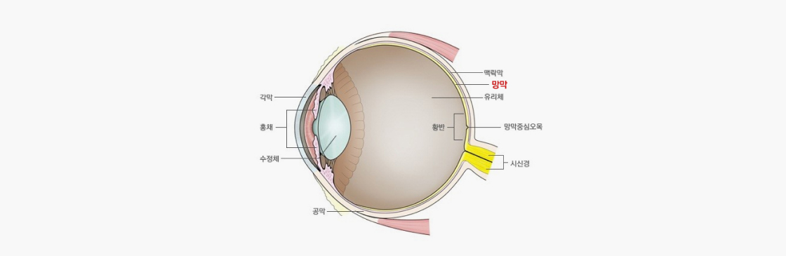 망막은 카메라 필름과 유사하다고 볼 수 있습니다. 외부의 빛이 각막, 동공, 수정체를 지나 망막에 상이 맺히게 되는데,