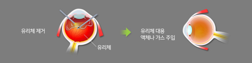 당뇨망막병증이 상당히 진행되어 유리체 출혈이 발생하여 쉽게 흡수되지 않거나 망막박리가 발생한 경우 혼탁해진 유리체는 제거하고 맑은 액체로 교체하는 초자체절제술을 진행한 후 안내 출혈과 망막박리를 유발하는 막을 제거하는 유리체절제술을 시행합니다. 유리체절제술의 경우 정교하고 섬세한 수술인 만큼 망막에 손상을 입히지 않도록 경험이 풍부한 의사에게 수술을 받는 것이 좋습니다.