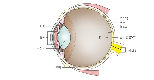 망막은 안구의 가장 안쪽을 덮고 있는 신경조직으로 빛을 통해 들어온 정보를 뇌로 전달하는 역할을 하여
